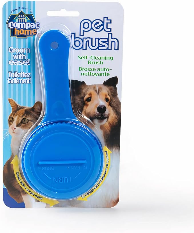 Compac Self Cleaning Pet Brush Twist to Raise and Lower Bristles, Blue, 1 Count