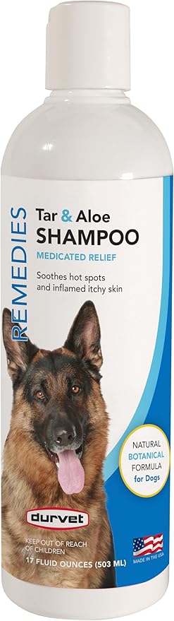• Medicated. Solubilized coal tar and natural aloe vera soothe itchy; inflamed skin due to hot spots; seborrhea and non-specific dermatitis