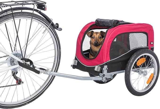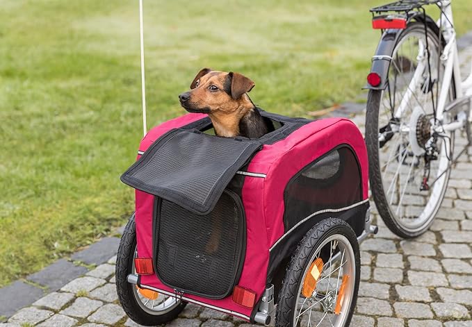 TRIXIE Dog Trailer for Bicycles, Dog Bike Trailer for Small Dogs up to 33 lbs, Quick Set-up and Fold Down, Red