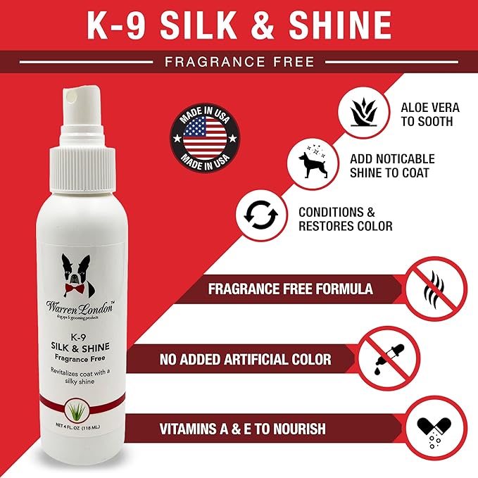 Warren London K9 Silk & Shine – Easy to Use Leave in Conditioner for Your Dog’s Soft Bright Coat – No Fragrance, Spray Bottle, Made in The USA – 4oz