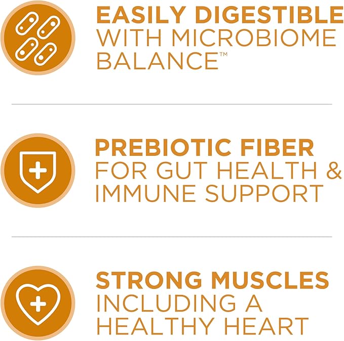 • Purina ONE chicken and rice dog food is easily digestible with a microbiome balance and a SmartBlend of high-quality ingredients, including prebiotic fiber for dogs