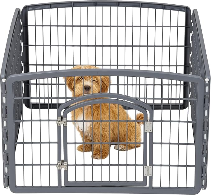 IRIS USA Puppy Playpen Dog Playpen Fence Enclosure with Dog Gate Door - Indoor Pet Playpen - 4 or 8 Panel
