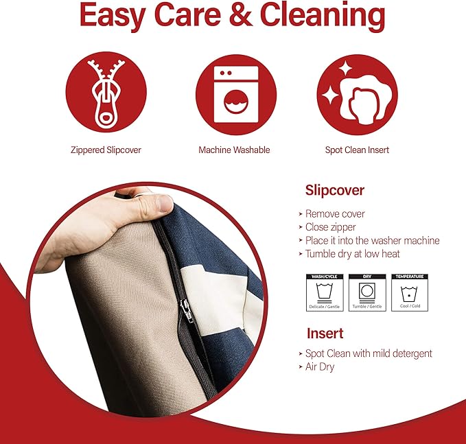- Machine Washable Slipcover: outer cover is zippered and can be easily removed for cleaning or washing. Wash on gentle cycle, tumble dry