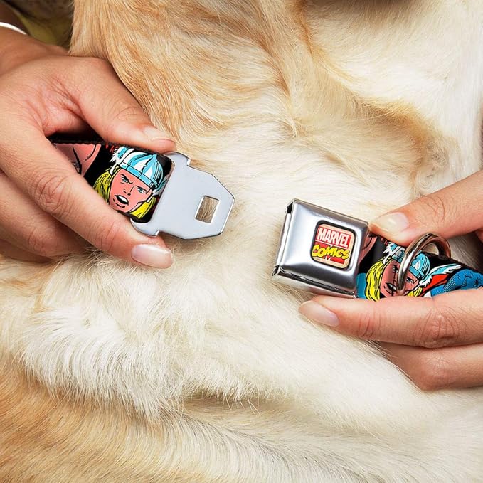 - Buckle-Down Seatbelt Buckle Dog Collar - 5-Marvel Characters Black - 1.5" Wide - Fits 13-18" Neck - Small