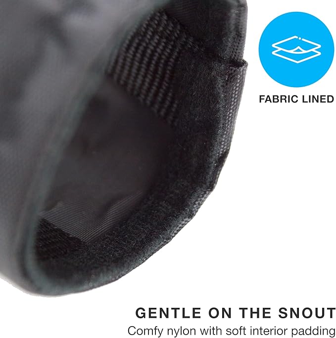 - Quick & Easy - The durable nylon is breathable and washable. Each quick-fit dog muzzle slips on and off with a quick-release buckle and adjustable neck strap