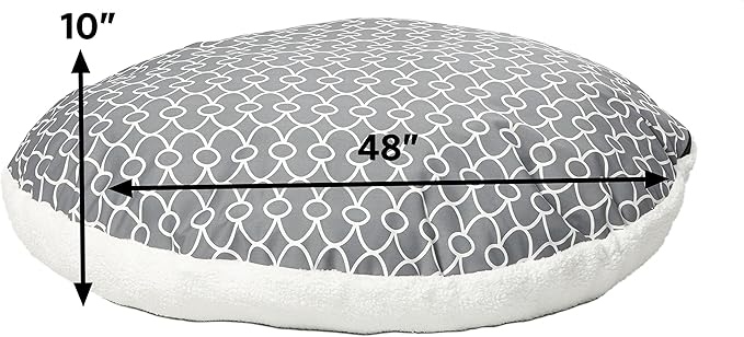 - Over-stuffed poly-fiber dog bed features Teflon Fabric Protector for long use. Dog pet bed measures 48 inches round x 10H", large dog breed, gray
