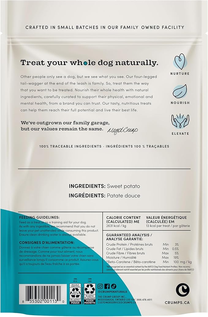• Single Ingredient: Using Whole Fresh Sweet Potatoes. Great For Dogs With Sensitivies To Meat Proteins