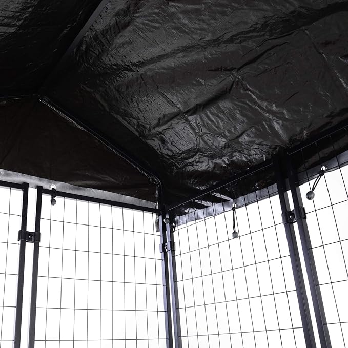 - All-Weather Protection: Keep your pet safe from the elements with the waterproof, UV-resistant PE-coated cover. This outdoor kennel ensures your dog stays comfortable and protected all year long.