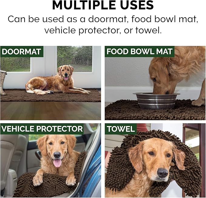 - MULTIPURPOSE: The rug's collection of highly absorbent, cuddly soft microfiber chenille filaments make it an ideal choice for a floor mat, door mat, food mat, sleeping bed mat, and furniture cover; it's also great for toweling off wet and dirty pups