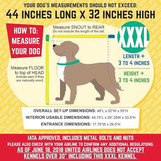- Your dog’s measurements should be under 44” L x 33” H for 3X-Large kennel