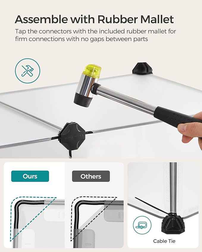 - [Assembly Is a Breeze] Simply join the plastic panels with the multi-angle connectors with the help of the included rubber mallet, you’ll quickly set up this pet playpen. The modular, lightweight structure also makes it easy to disassemble or move around