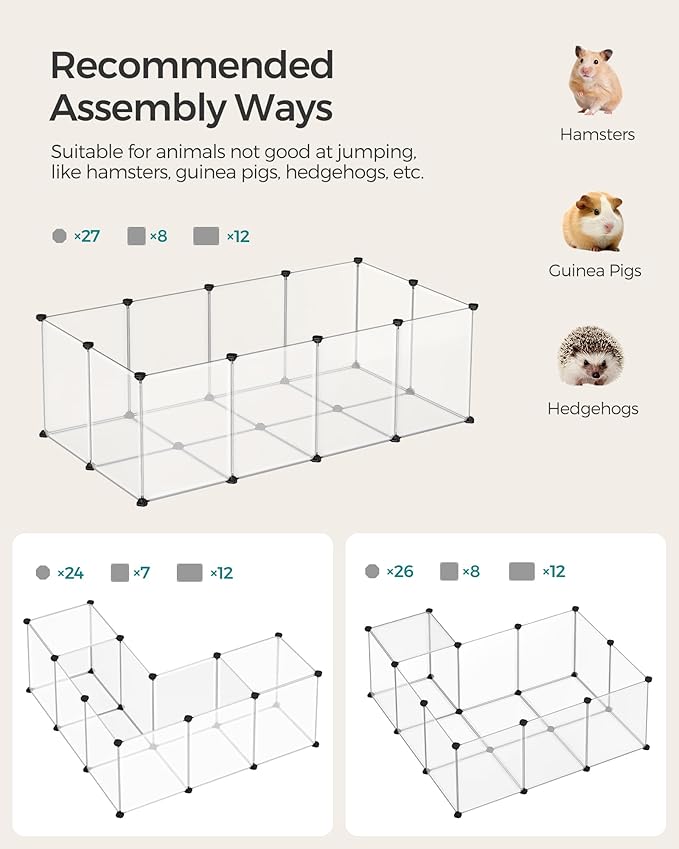 - [Customizable and Expandable] Arrange this flexible pen in an L-shape to fit your corner space or stack them into a 2-story pet house within the limit of the included parts. Please see the recommended assembly methods below for further details
