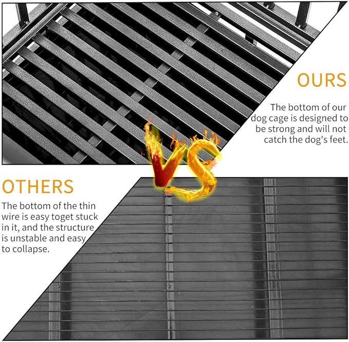 - Heavy duty frame: made from industrial corrosion-resistant steel, indestructible and durable, hard to be damaged, nontoxic finished surface keep your dog health, suitable for most medium and large dogs, two locks with the safety buckles to prevent the high anxiety dogs from opening the door and escaping