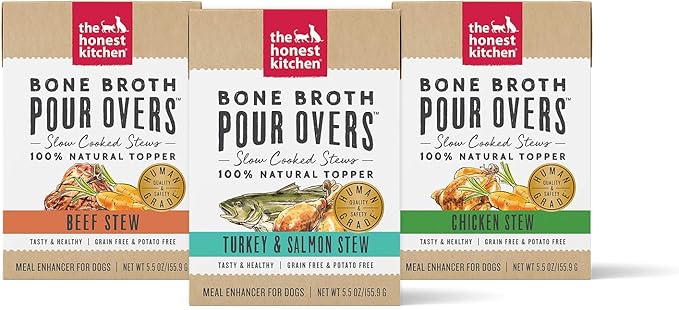 The Honest Kitchen Bone Broth POUR OVERS™ Wet Toppers for Dogs (Variety Pack of 3), 5.5 oz