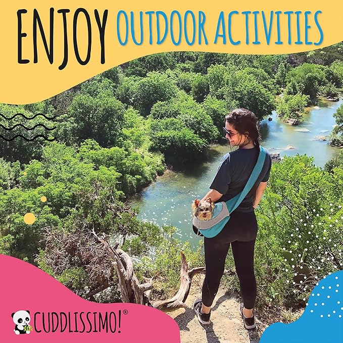 - 🐶 PERFECT FOR SMALL PETS - Cuddlissimo! pet sling carrier is designed for small and teacup dogs or cats, up to 6 pounds in weight. This dog sling has a padded bottom, and the neck opening is fully adjustable.