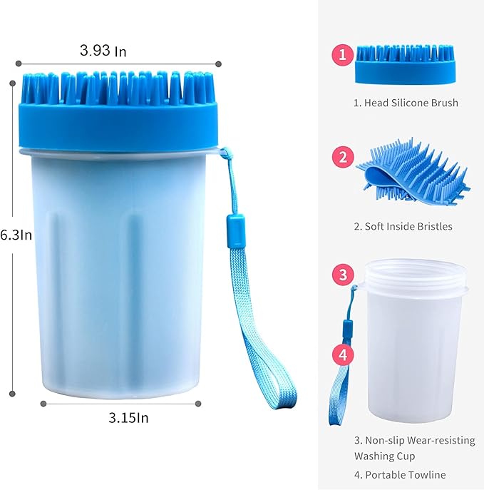 • Easy to use -Fill it with water, put your dog's paws in the cup, gently twist the container and move it up and down.