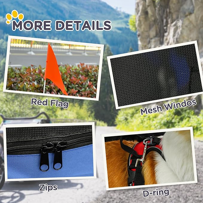 - Smooth Rolling: Two 20" rear wheels provide a smooth ride on pavement and are off-road capable for those adventures into the wilderness. A flag on the dog carriage and reflectors on the wheels provide visibility in traffic and low-light conditions.