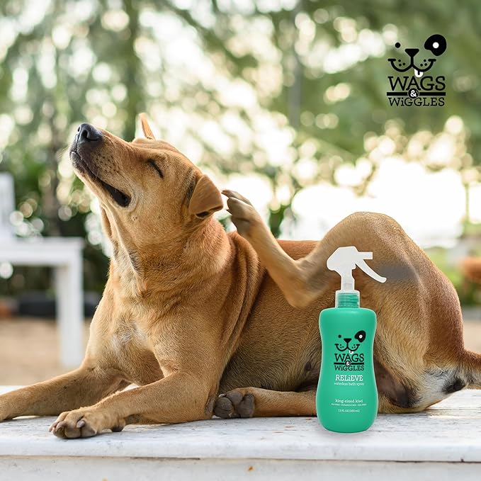 Wags & Wiggles Relieve Anti-Itch Spray for Dogs | Waterless Dry Shampoo for Dogs With Dry, Itchy, Or Sensitive Skin | Kiwi Scent Your Dog Will Love, 12 Ounces, Anti-Itch Spray - Kiwi