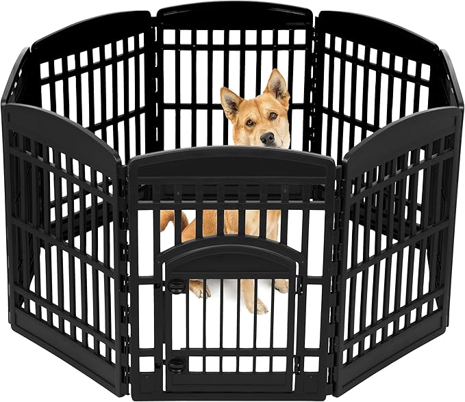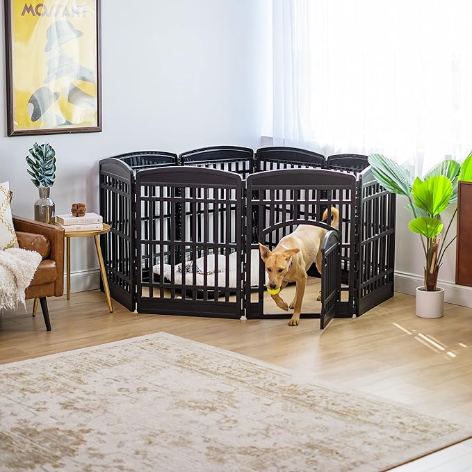 IRIS USA 34" 8-Panel Dog Playpen with Door, 63 x 63 x 35, Puppy Fence, Puppy Playpen, Dog Play Pen Indoors, Pet Fence, Medium Pets, Black