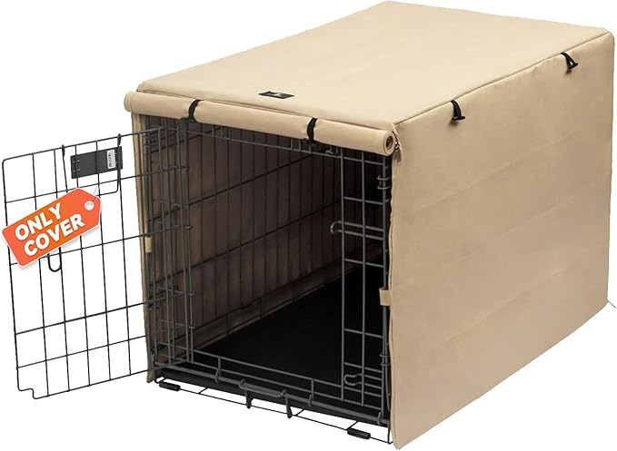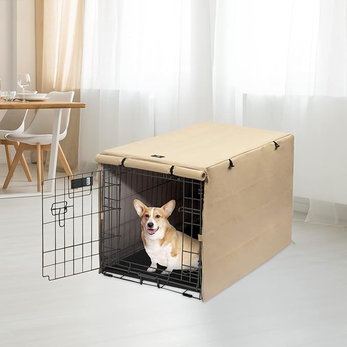 X-ZONE PET Double Door Dog Crate Cover - Polyester Pet Kennel Cover (Fits 24 30 36 42 48 inches Wire Crate) (30Inch, Tan)