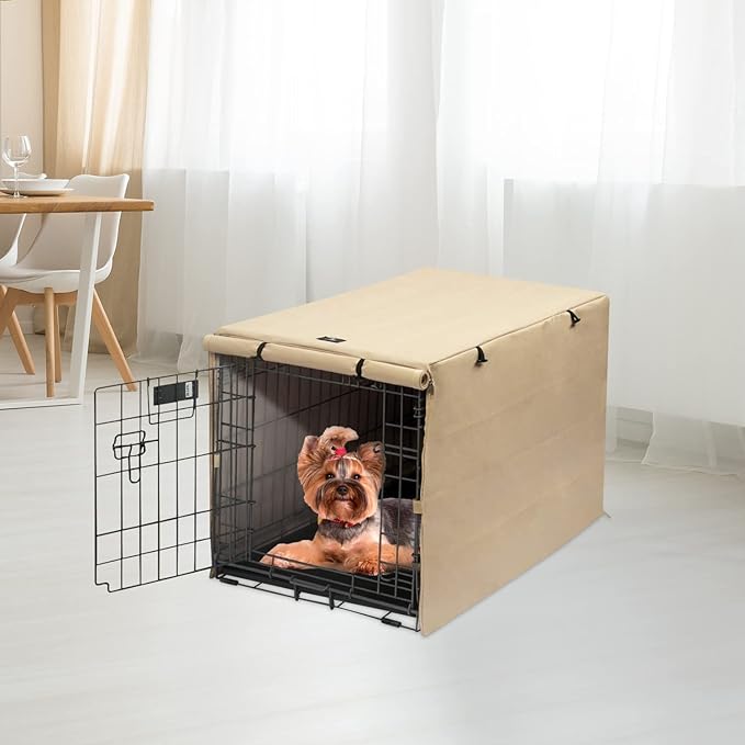 X-ZONE PET Double Door Dog Crate Cover - Polyester Pet Kennel Cover (Fits 24 30 36 42 48 inches Wire Crate) (24 Inch, Tan)