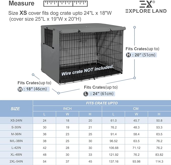 Explore Land 24 inches Dog Crate Cover Heavy Duty Polyester Pet Kennel Sunshade Universal Fit for Wire Cage (Grey)