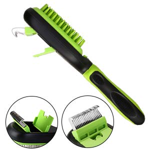 - 5-in-1 Brush Set: This pet brush can be switched among 5 different brush heads: massage brush, tufted brush, knot opening brush, hair removing brush and air cushion brush. You don’t need to use 5 different brushes. The brush can easily remove loose hair, damaged hair, tangles, clumps, dander, dirt and increases blood circulation.
