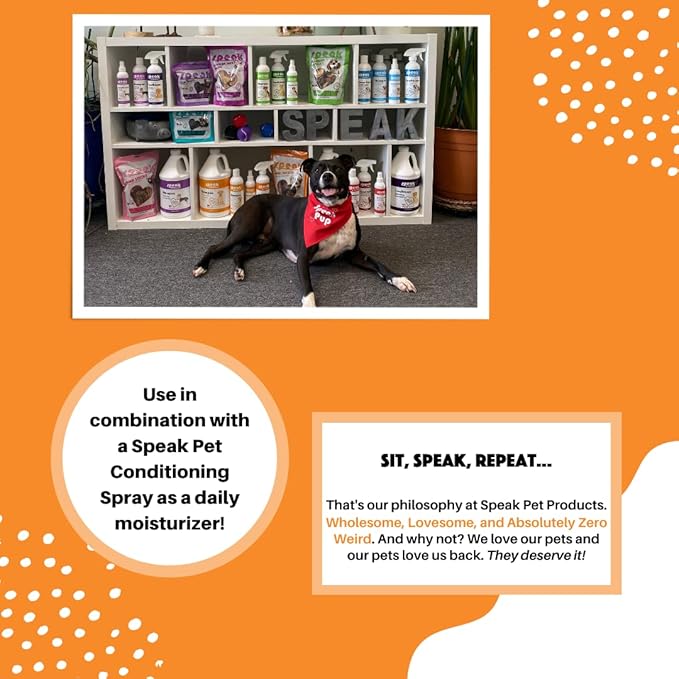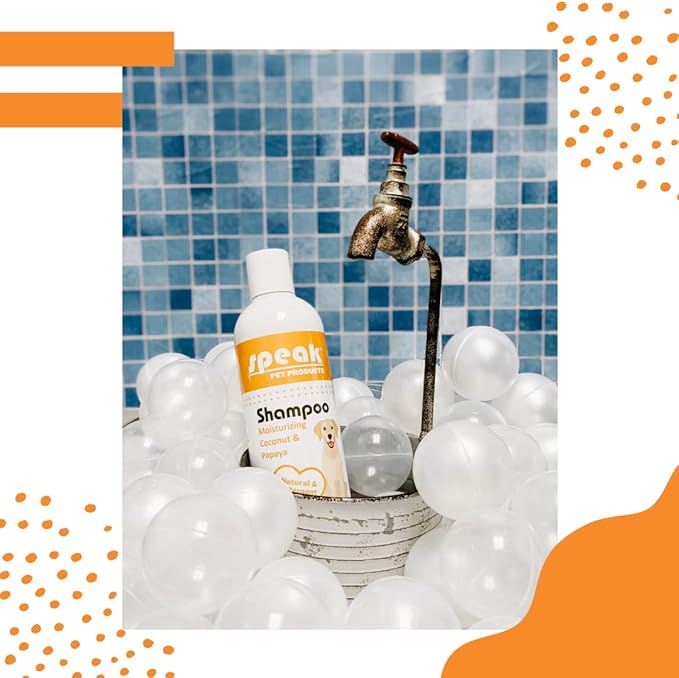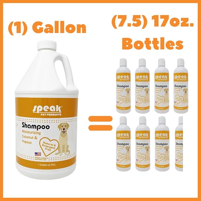 - Contains (1) Speak Pet Products Moisturizing Coconut and Papaya Shampoo & (1) pump dispenser
