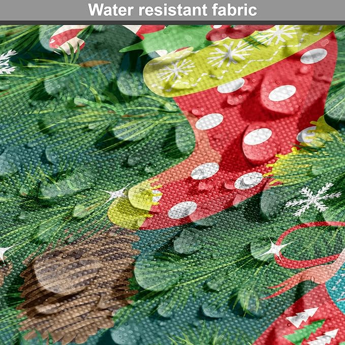 Ambesonne Christmas Dog Crate Cover, Xmas Accessories Stockings Candies Horse Teddy Bear on Pine, Easy to Use Pet Kennel Cover for Medium Large Dogs, 36 Inch, Green Brown