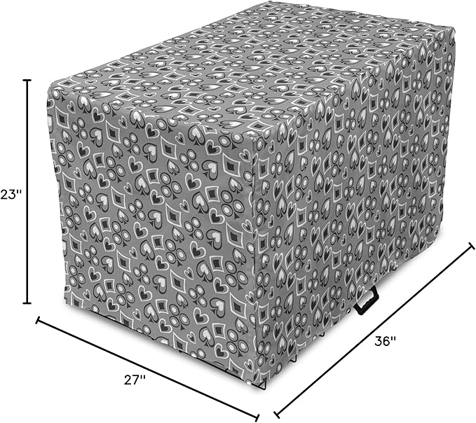 Lunarable Casino Dog Crate Cover, Playing Cards Abstract Style with Monochrome Display Gambling Theme, Easy to Use Pet Kennel Cover for Medium Large Dogs, 36 Inch, Black White Grey