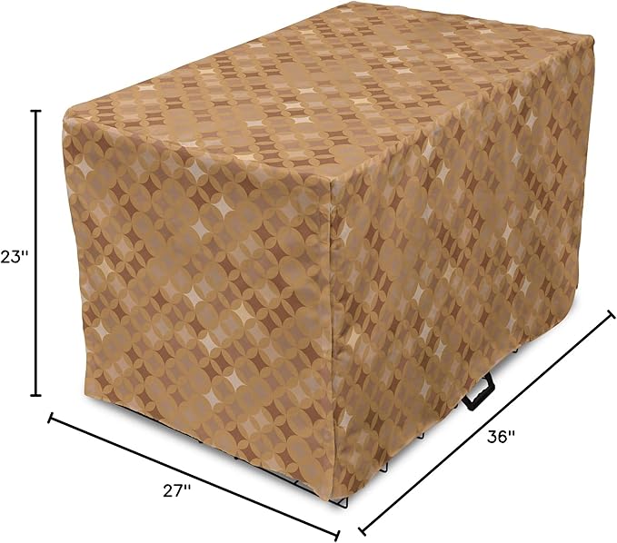 Lunarable Abstract Dog Crate Cover, Classic Print of Retro Style Round Intricate, Easy to Use Pet Kennel Cover for Medium Large Dogs, 36 Inch, Cocoa Pale Brown