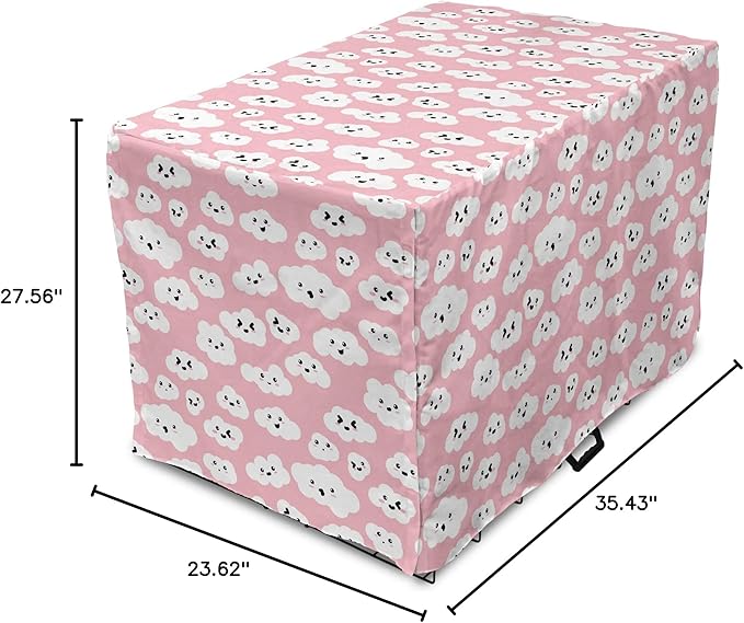 Ambesonne Cloud Dog Crate Cover, Continuous Fluffy Cumulus Blush Tones Sky Cartoon, Easy to Use Pet Kennel Cover for Medium Large Dogs, 36 Inch, Pink Charcoal