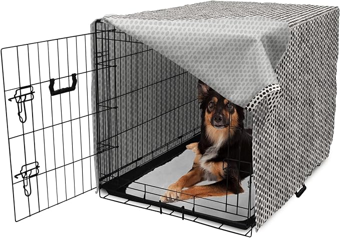 Lunarable Abstract Dog Crate Cover, Monochrome Grunge Pattern with Modern Round Shapes Print, Easy to Use Pet Kennel Cover for Medium Large Dogs, 36 Inch, Grey Charcoal