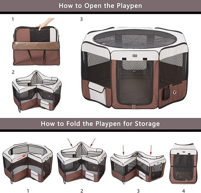 DONORO Dog Playpen 29" Portable Pet Play Pens for Small Dog/Cat/Rabbit/Chicks, Foldable Exercise Kennel Tent Crate Indoor/Outdoor Travel Camping, Removable Top/Bottom (Brown, Small (29"x29"x15"), 8)