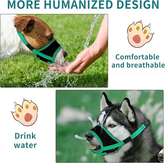 - UPGRADE HUMANIZED DESIGN - Different from the traditional dog muzzle, wearing the dog mouth cover, you can leave a proper space for your dog mouth to breathe, gasp and drink. The more humane design solves the inconvenience of traditional dog masks that do not drink water.