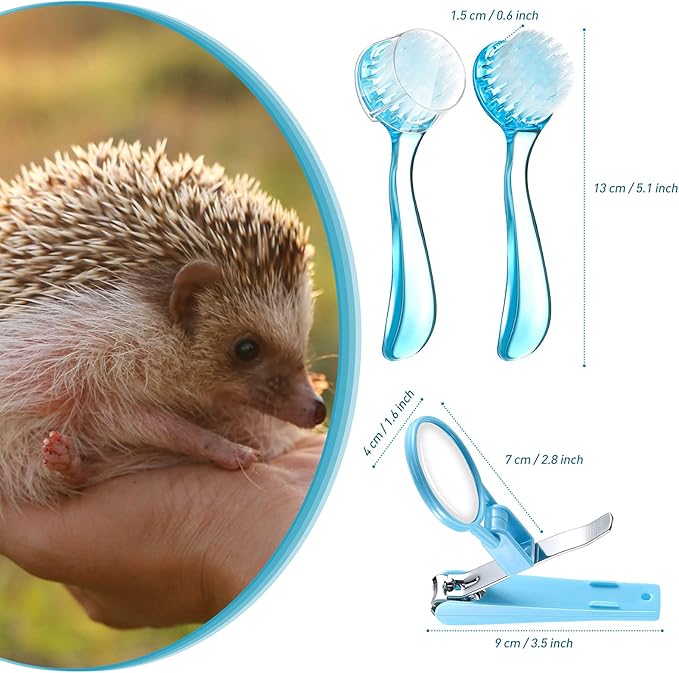 Mudder Small Animal Grooming Kit: 2 Pcs Hedgehog Supplies Hedgehog Accessories Hedgehog Bathing Brush with Nail Toenail Clipper with Magnifier for Pet Hamster Guinea Pig Rabbit Cat Kitten
