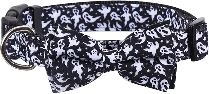 Halloween Dog Collar with Removable Cute Bow Tie Adjustable Pet Collars Medium