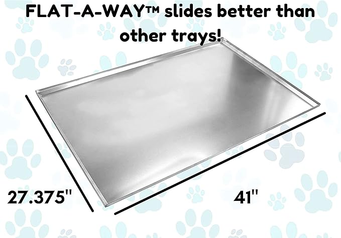 - Unique Patent pending FLAT-A-WAY design. Slides in and out so easily! You'll have no more broken, cracked or chewed up kennel liners with the stainless steel Replacement Dog Kennel Tray from Red Hound Auto. Includes 1 all metal crate pan (kennel and dog not included).