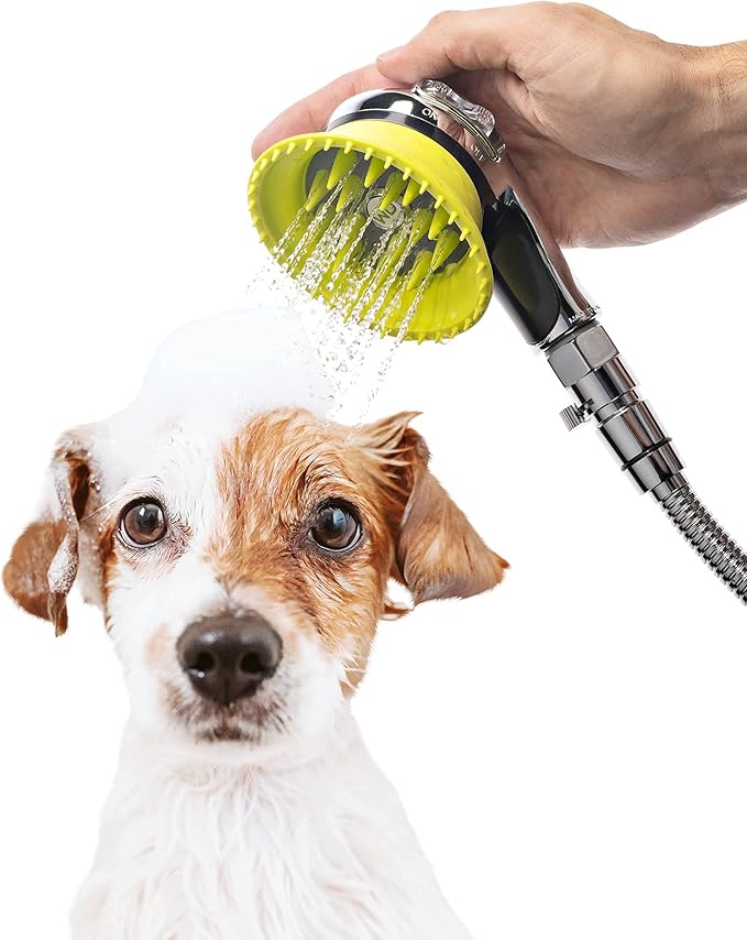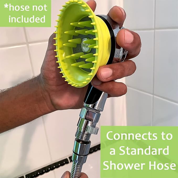 WD Handheld Shower Brush with On/Off Switch and Water Pressure Control | Shield Water While Brushing and Washing Simultaneously | Dog Washing Shower Attachment