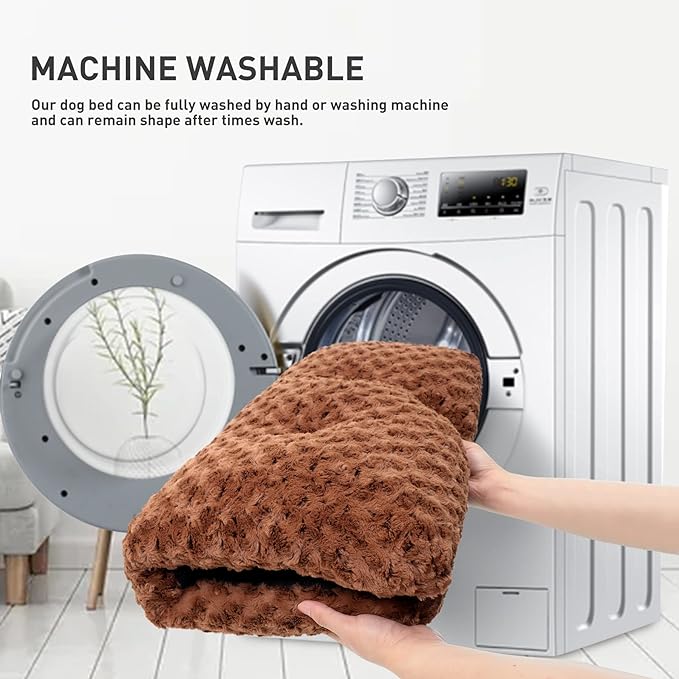KSIIA Washable Dog Bed Deluxe Plush Dog Crate Beds Comfy Kennel Pad Anti-Slip Pet Sleeping Mat for Large, Jumbo, Medium, Small Dogs Breeds, 29" x 21", Brown