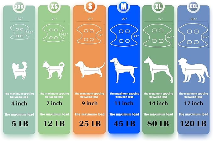 - 🐕 [ Choose the Right Size and Weight ]: Please read the size chart and measure the spacing between the Front and Rear Legs (9" - 14") / Weight( under 80 lb) for your pets before purchasing. If you have another question, please connect us.