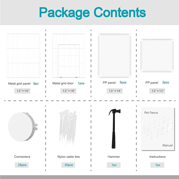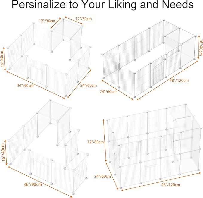 - [Ideal Small Animal Fence]: DIY animal fence is suitable for small pets such as dwarf rabbits, turtles, guinea pigs, chinchillas and so on. Before buying your pet fence, please check the size and buy according to your needs