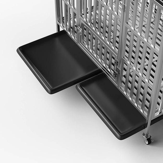 Collapsible Stainless Steel Dog Crate, 30" 37" 42" 48" Sizes, Lockable Wheel, with Tray, Stackable, Heavy Duty, Divider, Indoor and Outdoor (42in)