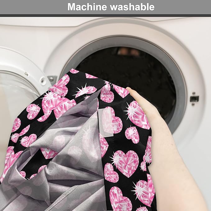 Ambesonne Diamonds Dog Crate Cover, Romantic Pink Heart Stones on Black Background Valentines Day Theme, Easy to Use Pet Kennel Cover for Cats & Medium Dogs, 30 Inch, Pink Black