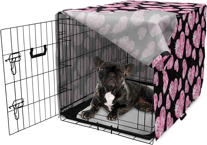 Ambesonne Diamonds Dog Crate Cover, Romantic Pink Heart Stones on Black Background Valentines Day Theme, Easy to Use Pet Kennel Cover for Cats & Medium Dogs, 24 Inch, Pink Black