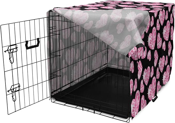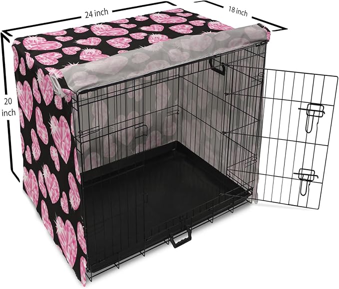 Ambesonne Diamonds Dog Crate Cover, Romantic Pink Heart Stones on Black Background Valentines Day Theme, Easy to Use Pet Kennel Cover for Cats & Medium Dogs, 24 Inch, Pink Black