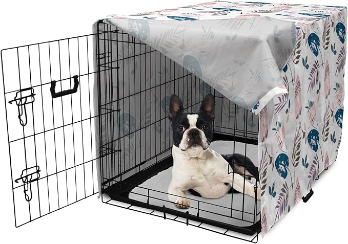 Ambesonne Leaves Dog Crate Cover, Abstract Foliage Pastel Colors Tropical Jungle Forest Plants Grunge Effect, Easy to Use Pet Kennel Cover Small Dogs Puppies Kittens, 22 Inch, Petrol Blue Baby Pink