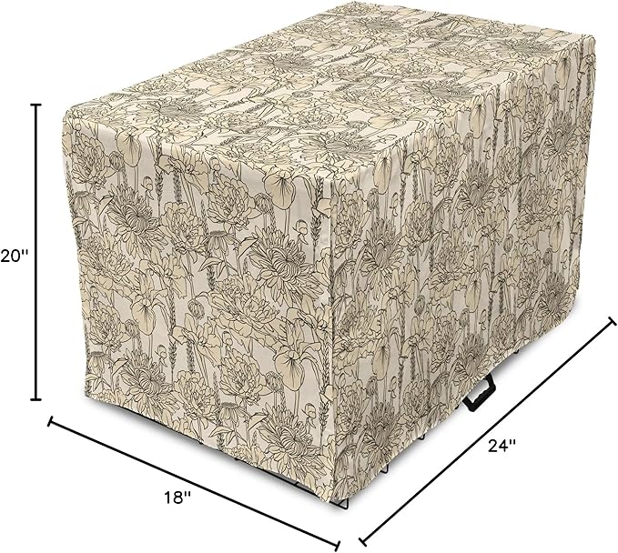 Lunarable Floral Dog Crate Cover, Daffodil and Carnation Bouquets Sketch Art Style Botanical Blossoms Field, Easy to Use Pet Kennel Cover for Cats & Medium Dogs, 24 Inch, Beige and Champagne