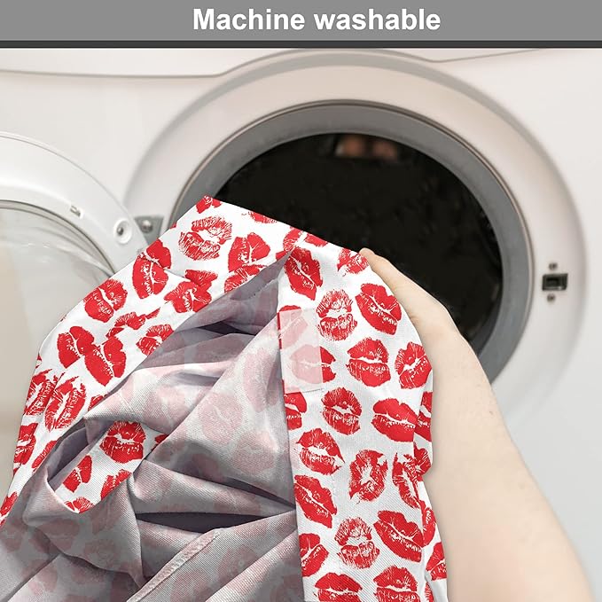 Lunarable Kiss Dog Crate Cover, Rhythmic Make up Red Luscious Lips Lipstick Imprint Illustration, Easy to Use Pet Kennel Cover for Small Dogs Puppies Kittens, 18 Inch, Dark Pink and White