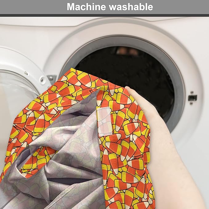 Lunarable Candy Corn Dog Crate Cover, Continuous Illustration of Cartoon Style Traditional Halloween Items, Easy to Use Pet Kennel Cover for Cats & Medium Dogs, 30 Inch, Vermilion Mustard